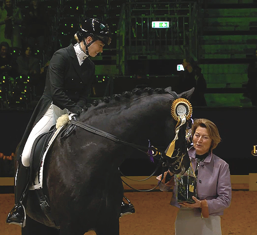 These piaffes and passages were rewarded with multiple nines and tens from the judges, as were Pauluis’ halts. She laughed about that afterwards: “I’m very happy with that, because it’s only in the last few months that I’ve managed to get him to halt square!”