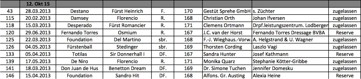 Fra 1. dagen er følgende hingste udtaget: