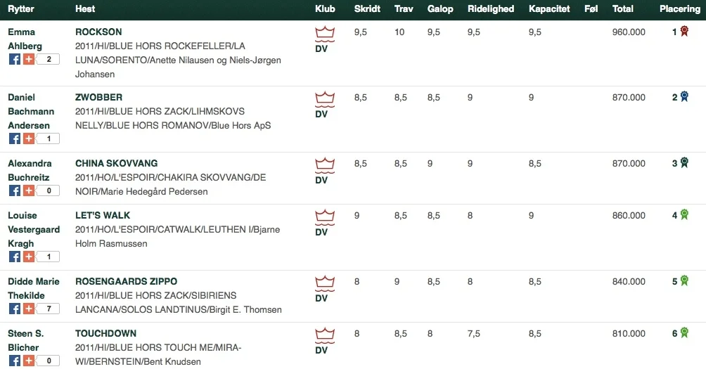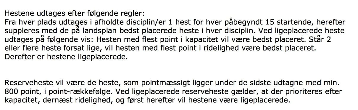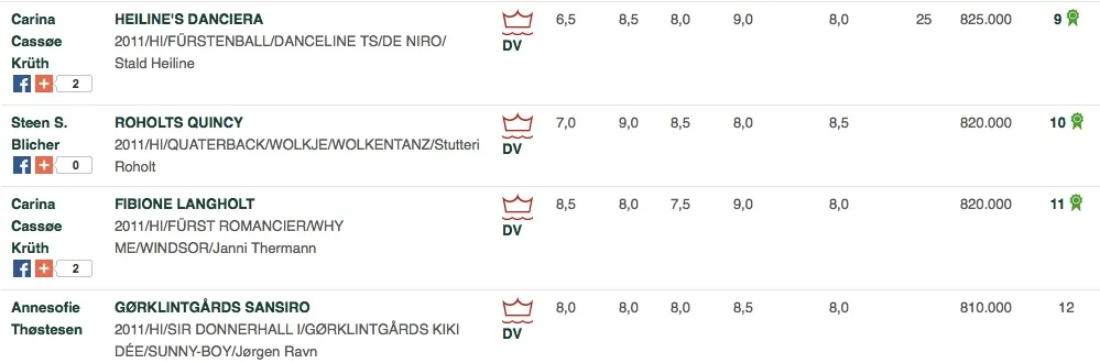 Iflg. reglerne er 37 heste udtaget. De 4 sidste heste som er udtaget med 810 point, hvoraf den ene har 8,5 i kapacitet (Touch Down) og de øvrige 3 er ligeplacerede med 8,0 i kapacitet og 8,5 i ridelighed.