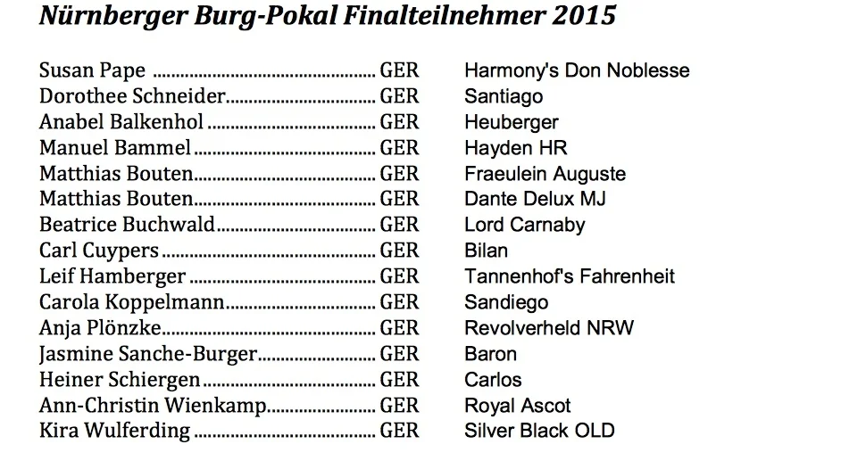 CDI4 tour, finale i Nürnberger Burg-Pokal og Louisdor Preis finale (unge GP heste).