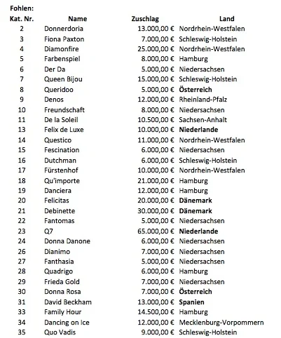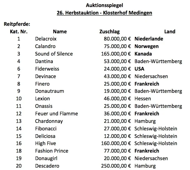 Auktionsresultater fra gårsdagens elite auktion på Klosterhof Medingen