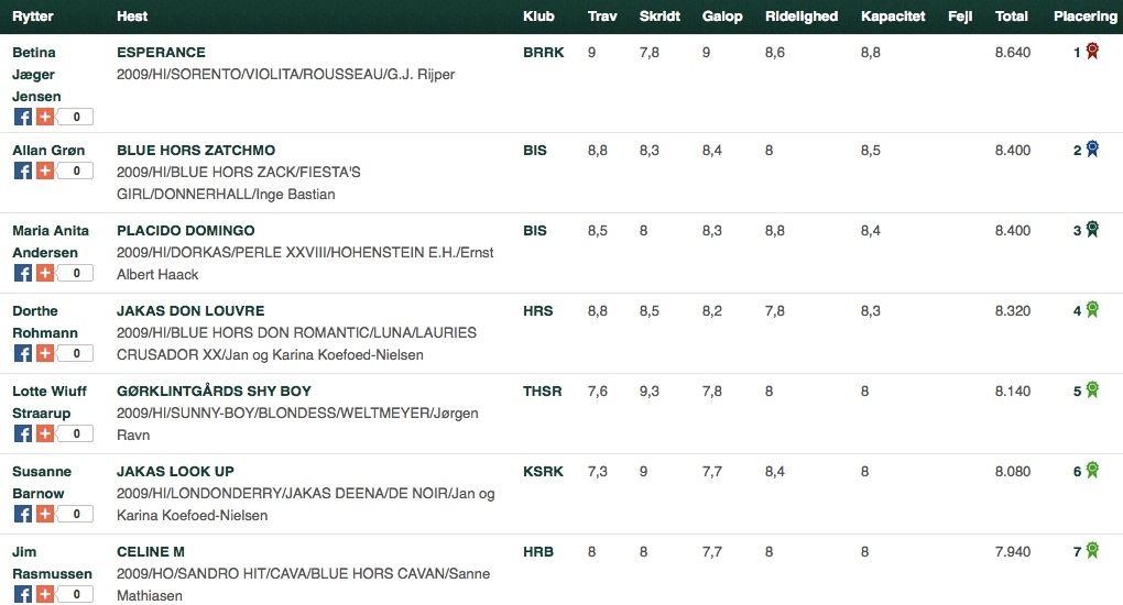 6 års - de 18 heste som er kvalificeret til finalen: