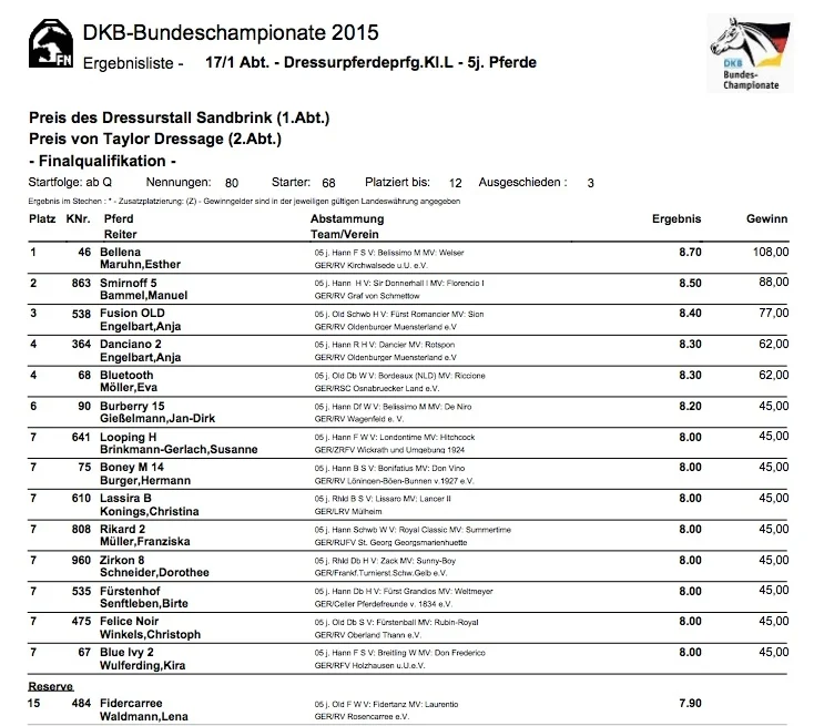 Dagens højeste point og vinderen blev den meget velgående hoppe Bellena e. Belissimo M/Werther - aktiv og skrap a la Bella Rose (dog uden samme format).
