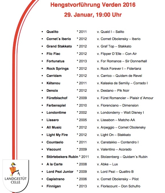 Følg med via Clipmyhorse, når Landgestüt Celle præsenterer deres hingste næste fredag.
