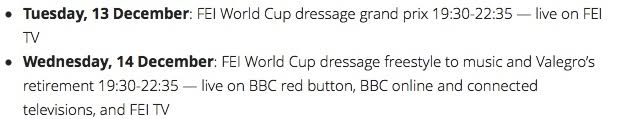 FEI-tv is streaming from both CDI-W Grand Prix and Grand Prix freestyle from London, Olympia this year, men even more important, we all gets the possibility to follow the official farewell to Valegro.