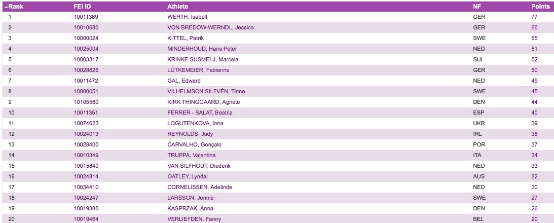 Et kig på deltagerlisten giver ihvertfald et fingerpeg om at spanske Beatriz Ferrer-Salat har tænkt sig at ride med i finalen.