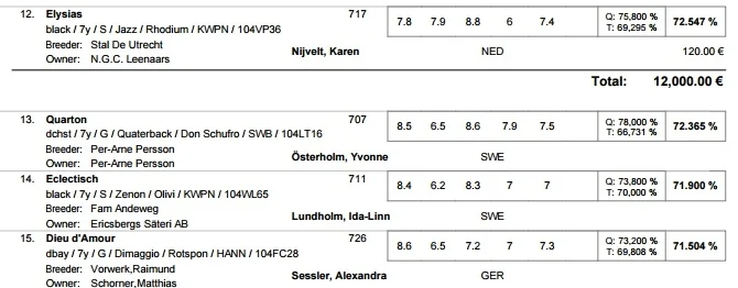 Verden 7. bedste 7 års hest hedder Gørklintgårds Quantico og verdens 11. bedste 7 års hest hedder Slæbækgård´s Santino. Flotte avler, rytter og ejer resultater som giver positiv genlyd.