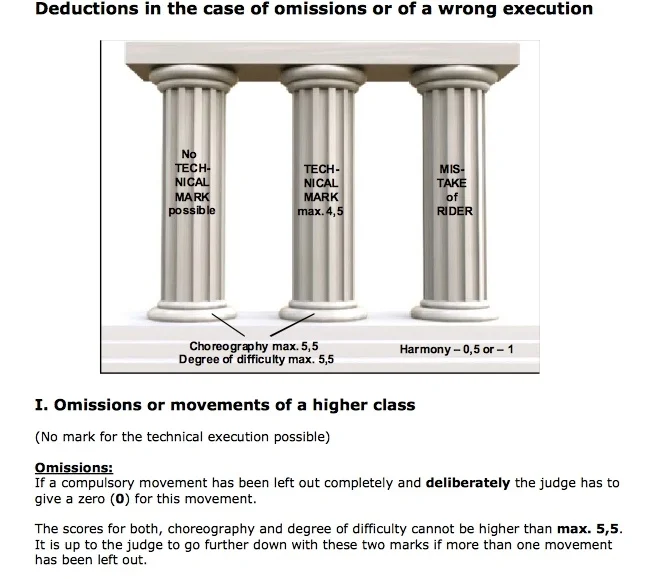 Det slås fast at det ALDRIG tilladt med mere end 2xpirouette, og med overgang til piaffe som her er tilfældet, tæller pirouetten ikke som en teknisk øvelse, blot som en del af sværhedsgraden / koreografien. Og så giver det netop mening hvis dommerne i det mindste havde trukket Peters i både sværhedsgrad og koreografi, men naturligvis ikke effektureret, når dommerpanelet vælger at se det som en ukontrolleret overgang.