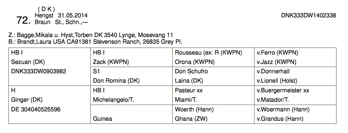 5 hingste med dansk isæt - ejerskab, avler eller opdrætter.