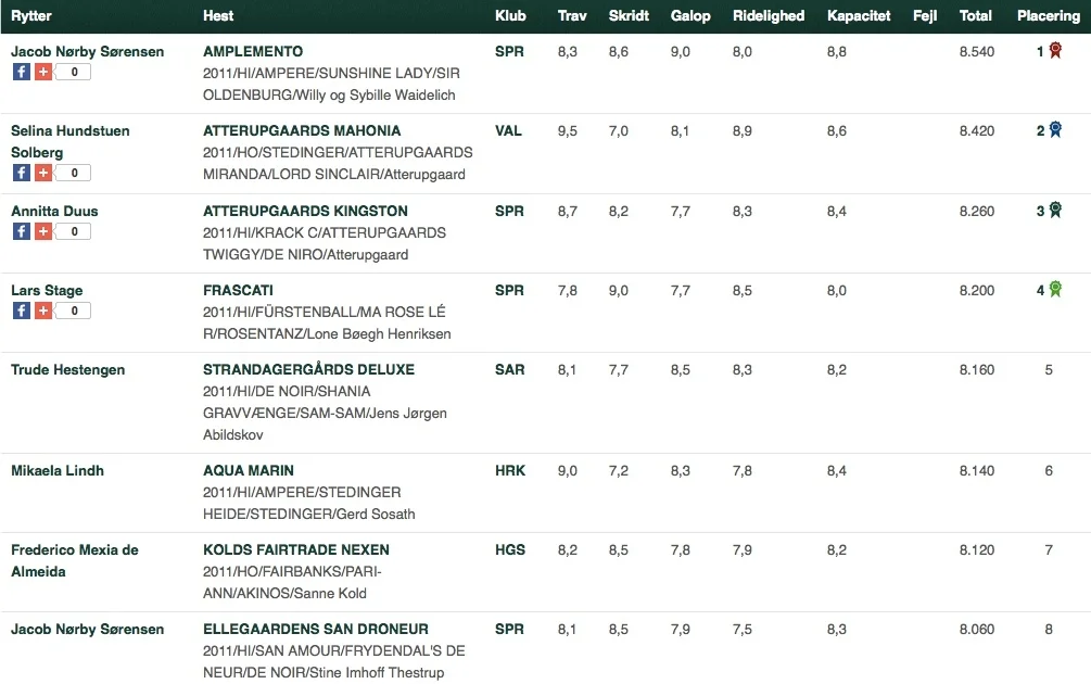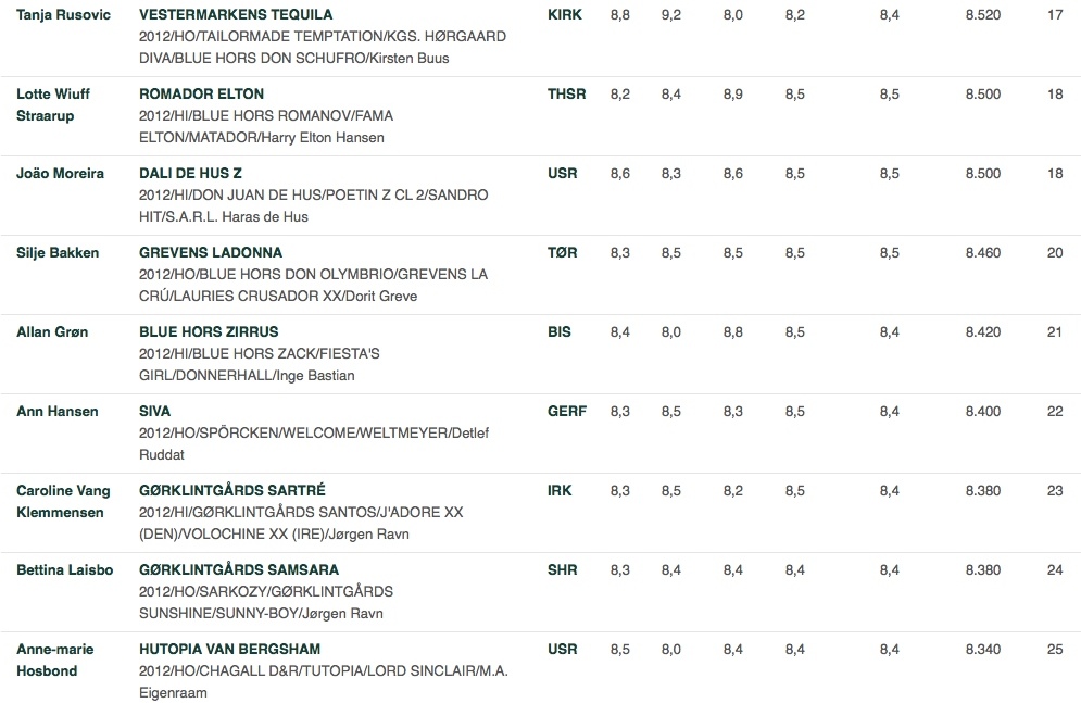 Mellemrunde VEST for 4 års heste er i dag afholdt i Billund. De 26 bedste (højeste score) på landsplan er klar til finalen.