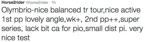 Helt "forfejlet" bliver Blue Hors Zack og Daniel Bachmann placeret i toppen feltet. Det synes ikke at have nogen indflydelse om der laves 9 eller de 12-15 piaffe trin, idet dommerne giver 7 og 7,5 generelt.