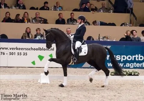 Kirsten Brouwer and the chestnut Eye Catcher by Vivaldi / Partout who is now 8 years old are daily trained by Kirsten's mother Anne Marie Brouwer. And it certainly appears as if Eye Catcher has talent for the most difficult exercises with quality and power from behind.