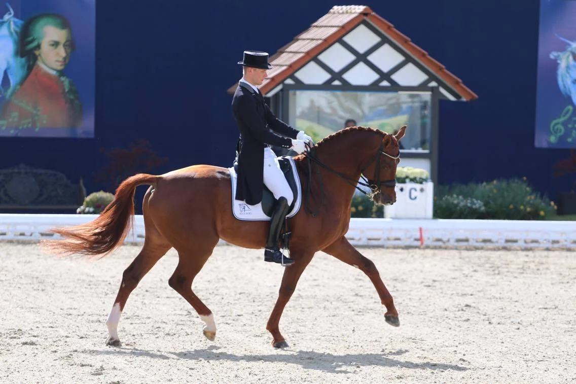 Daniel Bachmann and Blue Hors Veneziano, with just 7 years, were the youngest horse in the field together with Hubertus Schmidt's Bonamour. Daniel and Veneziano have a very strong partnership. The young stallion plays great along all the way, and he also seems to have significantly improved in the quality and strenght of the canter. Of course, there is still room for improvement of the strength for the pirouettes, as an error creeps in after the pirouette for the change. Great series where Veneziano jumps nicely through and out up through the shoulders. And as Daniel says after todays test, it's a matter of strength so that he will be able to ride the test without helping Veneziano to much, and it's a great stallion who gives you a very nice feeling and who wants to work for you tells Daniel.