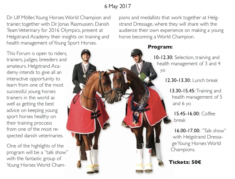 Charlotte Mogensen April 5, 2017 Helgstrand Academy invitation for Young Horse clinic at May 6 Charlotte Mogensen April 5, 2017