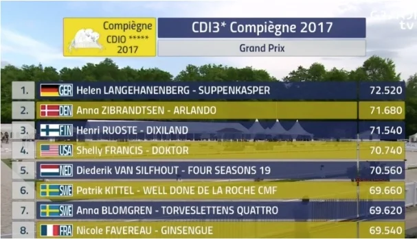 36 startende i dagens CDI3 Grand Prix fra Compiégne i Frankrig, og med flere debutanter uden tekniske fejl.