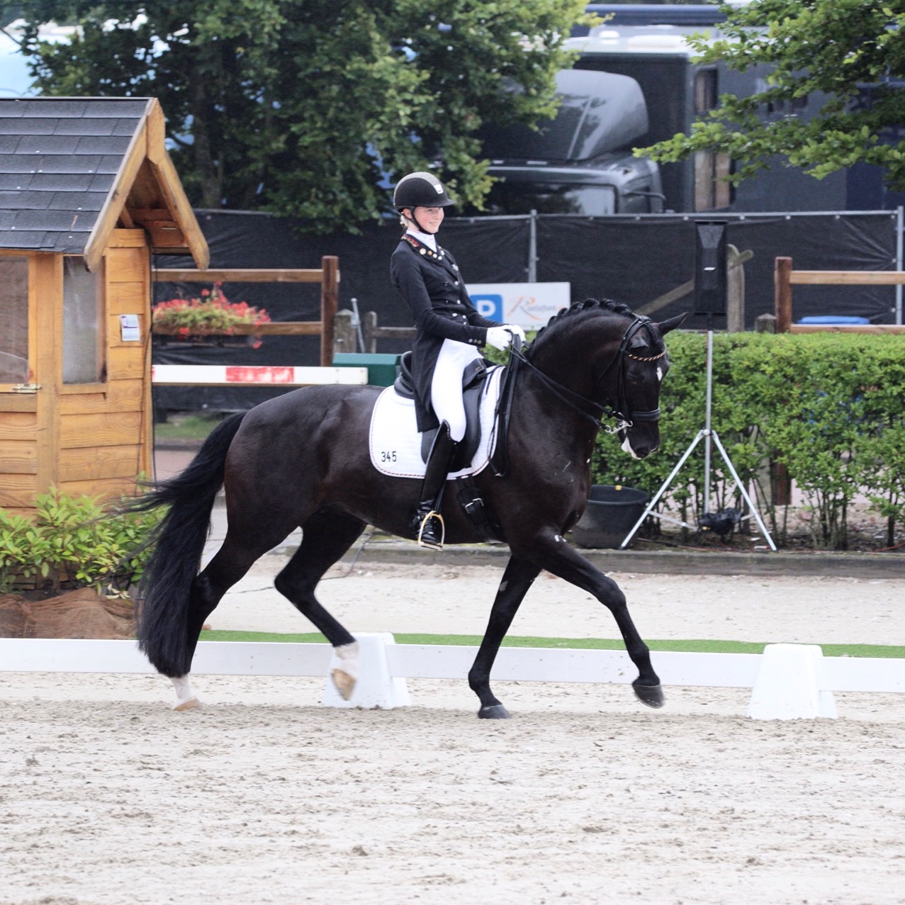 The more demanding test at young rider level does really fit the 10-yr-old Carlos by Carabas/Weltmeyer, and Hannah´s timing for the entire test just makes the champion picture. Easy contact, good power and lovely expression for all three paces for today´s test, just a single small lack of balance in the middel of the short medium trot at the first short diagonal. From there a "spot on" test = 77,658%.