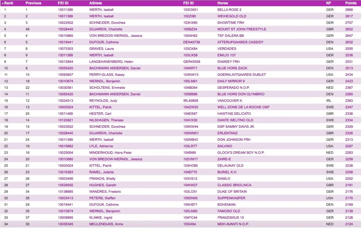 Charlotte Mogensen January 6, 2020 New World Ranking 31 December 2019 - Dujardin and MSJ Freestyle jumps from 48 to 4! Charlotte Mogensen January 6, 2020 photo credit: Lily Forado See the full list 31.12.2019 here.