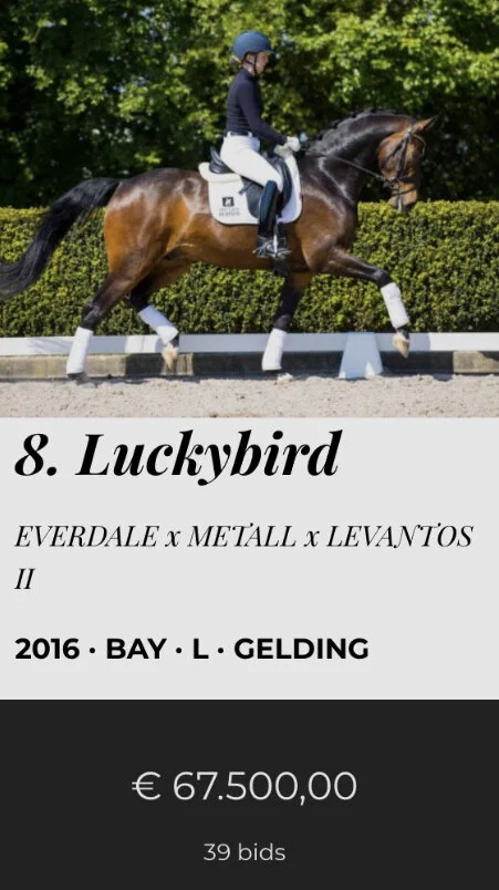 The first online auction at Van Olst Sales just ended with the top price of 67.500 euro for the 4 year old gelding by Grand Prix sire Everdale.