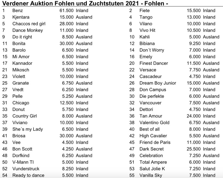 Charlotte Mogensen August 9, 2021 61.500 euro top price colt by Bonds at HANN Online auction Charlotte Mogensen August 9, 2021 Here you find all details about each foal.