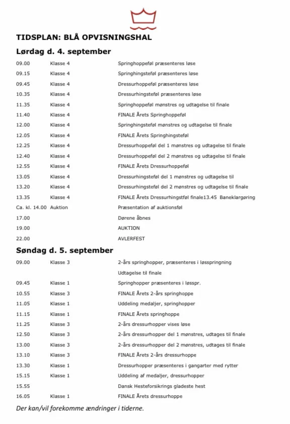 Charlotte Mogensen September 1, 2021 Har du styr på tidsplanen til Eliteskuet, Elitefølauktion, Championatskvalifikationer m.m. Charlotte Mogensen September 1, 2021 Her finder du link til alle konkurrence klasserne.Her finder du kataloget til Eliteskuet.