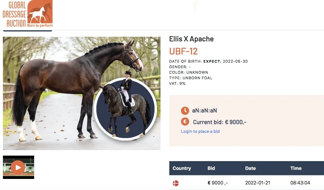 Interesting combinations are up for sale and current top price is also the most interesting unborn foal with the combination of the young Escolar stallion Ellis and Weihegold OLD direct dam line.