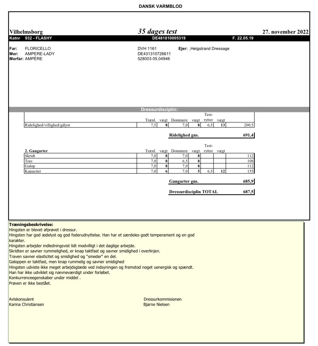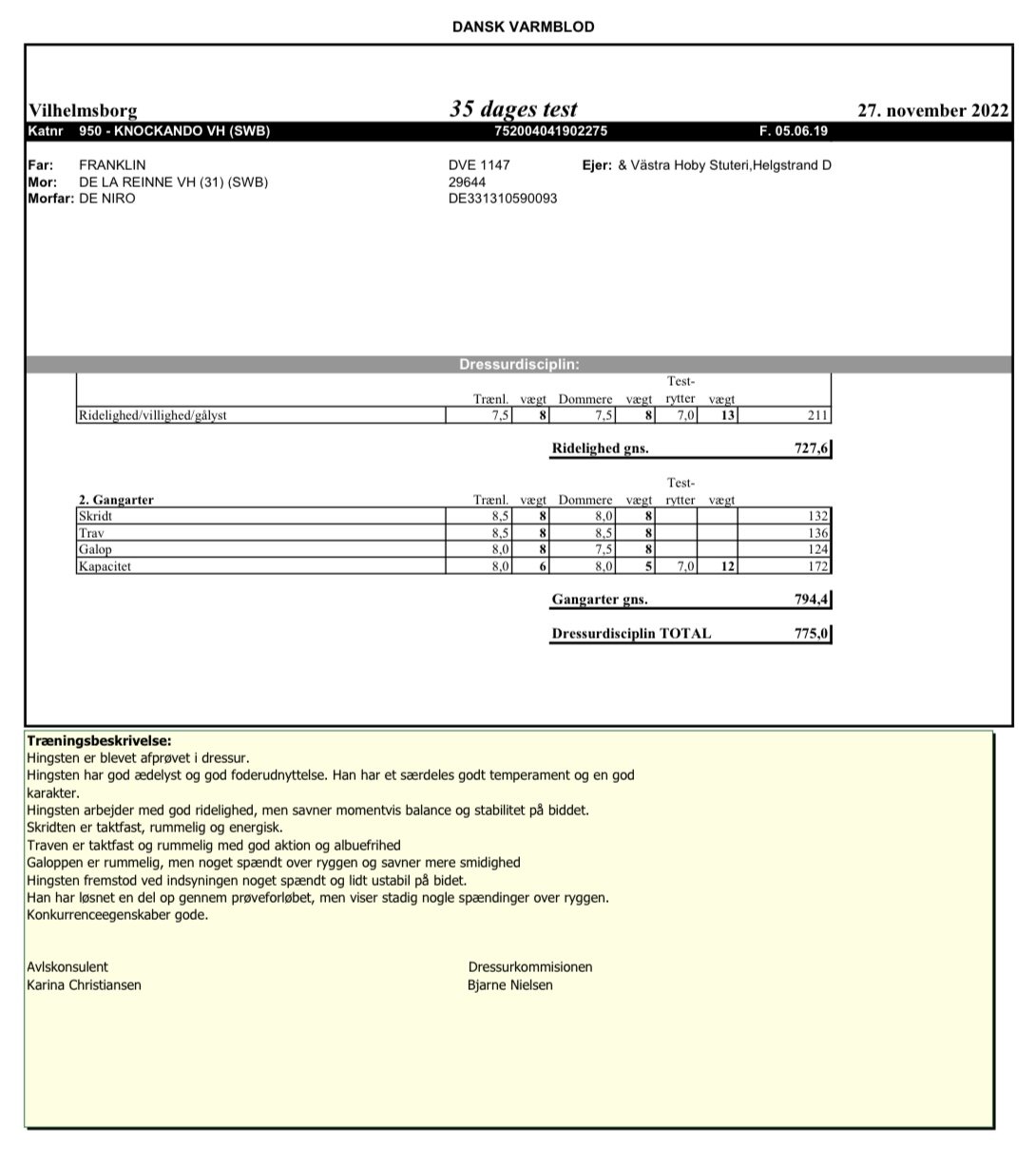 Hesselhøj Donkey Boy sønnen Svalegårds Hot Driver suveræn vinder af 35-dages test med 903.5 point.