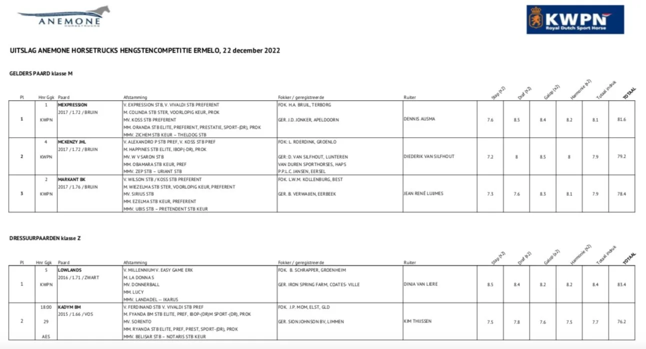 NEXT AND LAST STALLION COMPETITION IS 3 JANUARY IN EXLOO.
