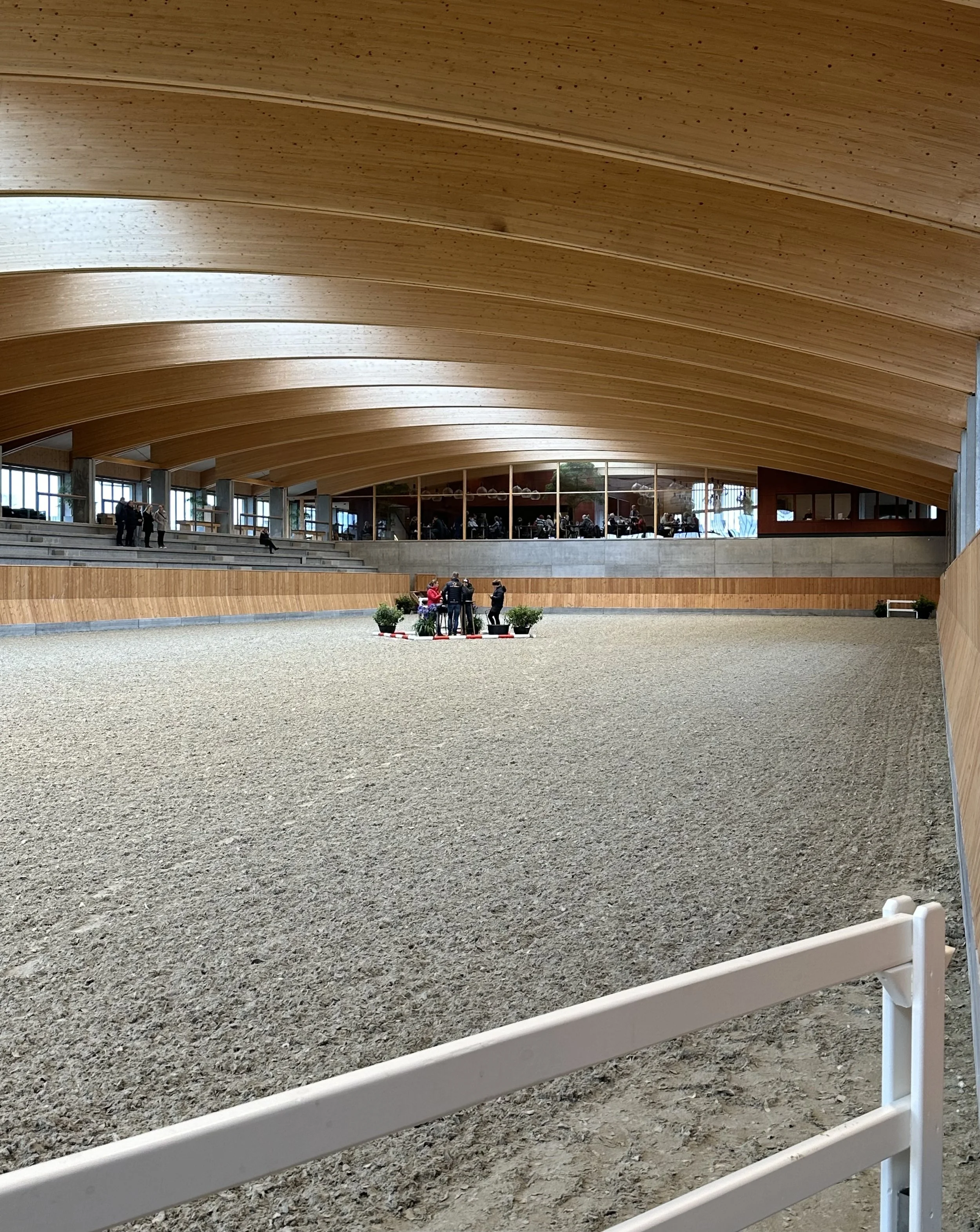 Eftermiddagens egnethedstest blev afholdt i de smukke og udsøgte faciliteter på Stutteri Ask i Martofte på Fyn. Indtil nu et mekka for springhestene, men i løbet af 2024 rykker også en mindre del af Blue Hors ind på det smukke anlæg.