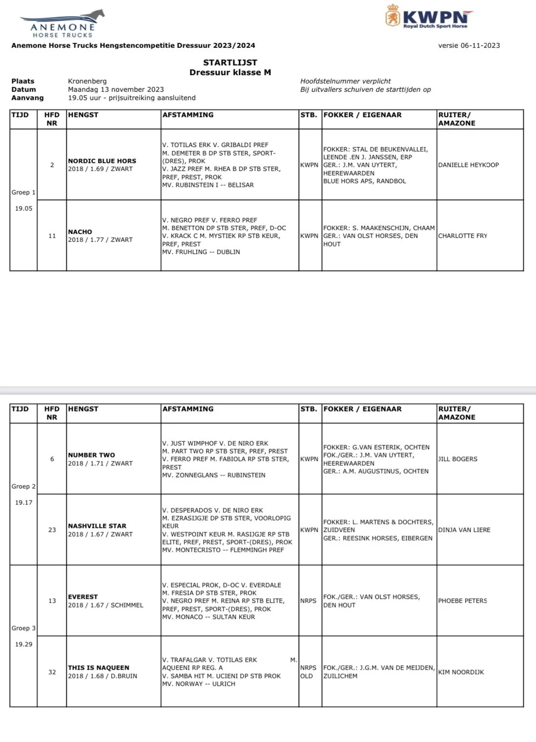 This year the KWPN stallion competition start Monday 13 November in Kronenberg.