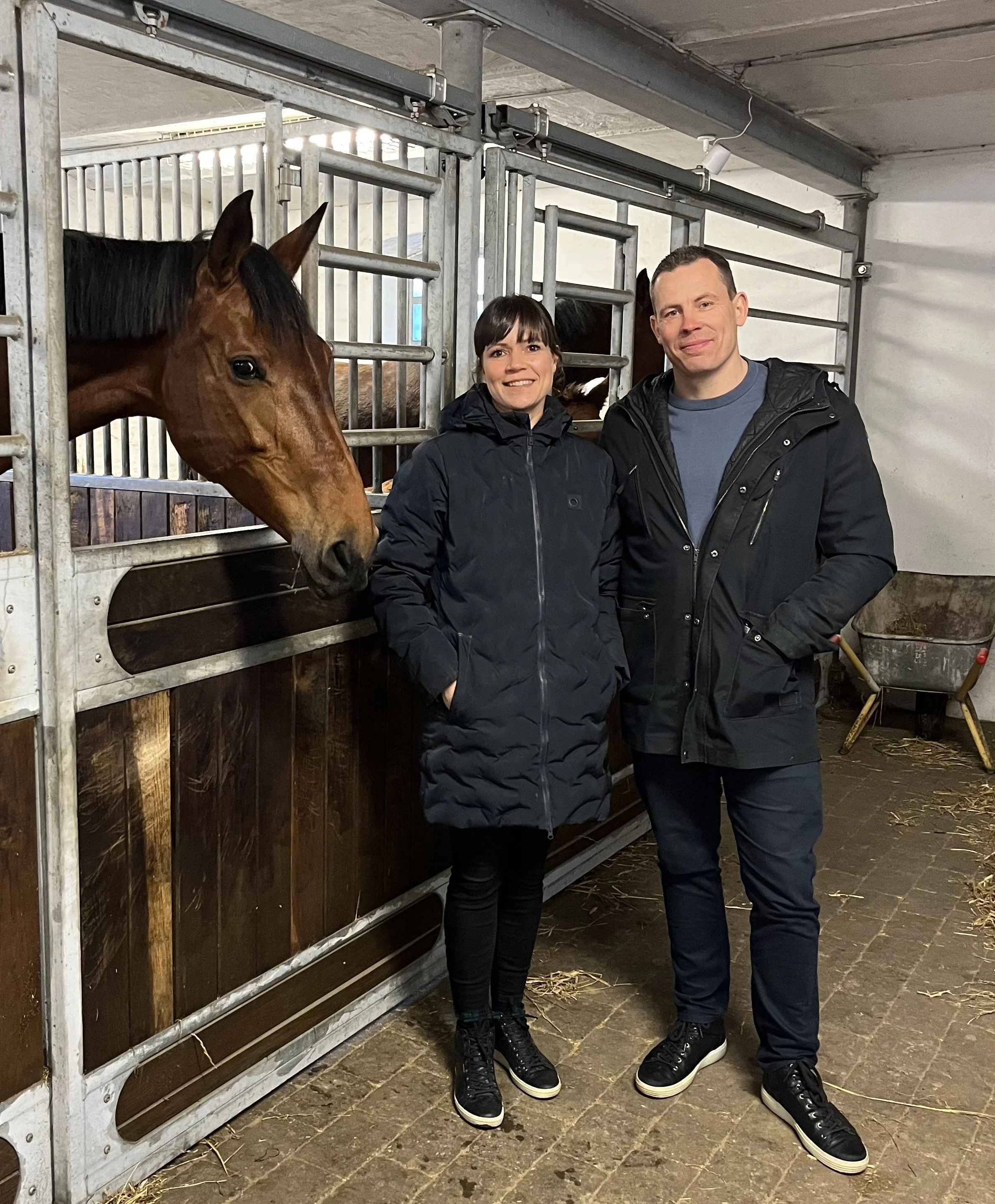Majken og Ulrik Faaborg Glerup sammen med den 7-årige hoppe Midt-West Franceska - foto: H2R