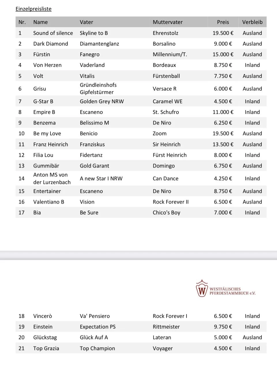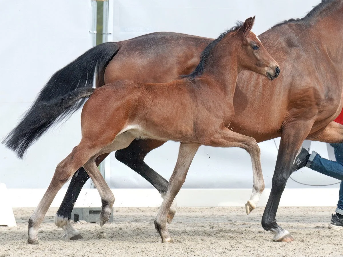 Charlotte Mogensen May 15, 2023 Skyline to B with his first auction foal - price top 19.500 euro at Westphalian dressage foal auction sold to Sweden Charlotte Mogensen May 15, 2023
