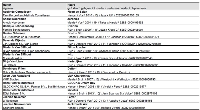 For the top of the Championships it look like Hans Peter Minderhoud, Dinja van Liere, Marliens van Baalen, Thamar Zweista and Lynne Maas.