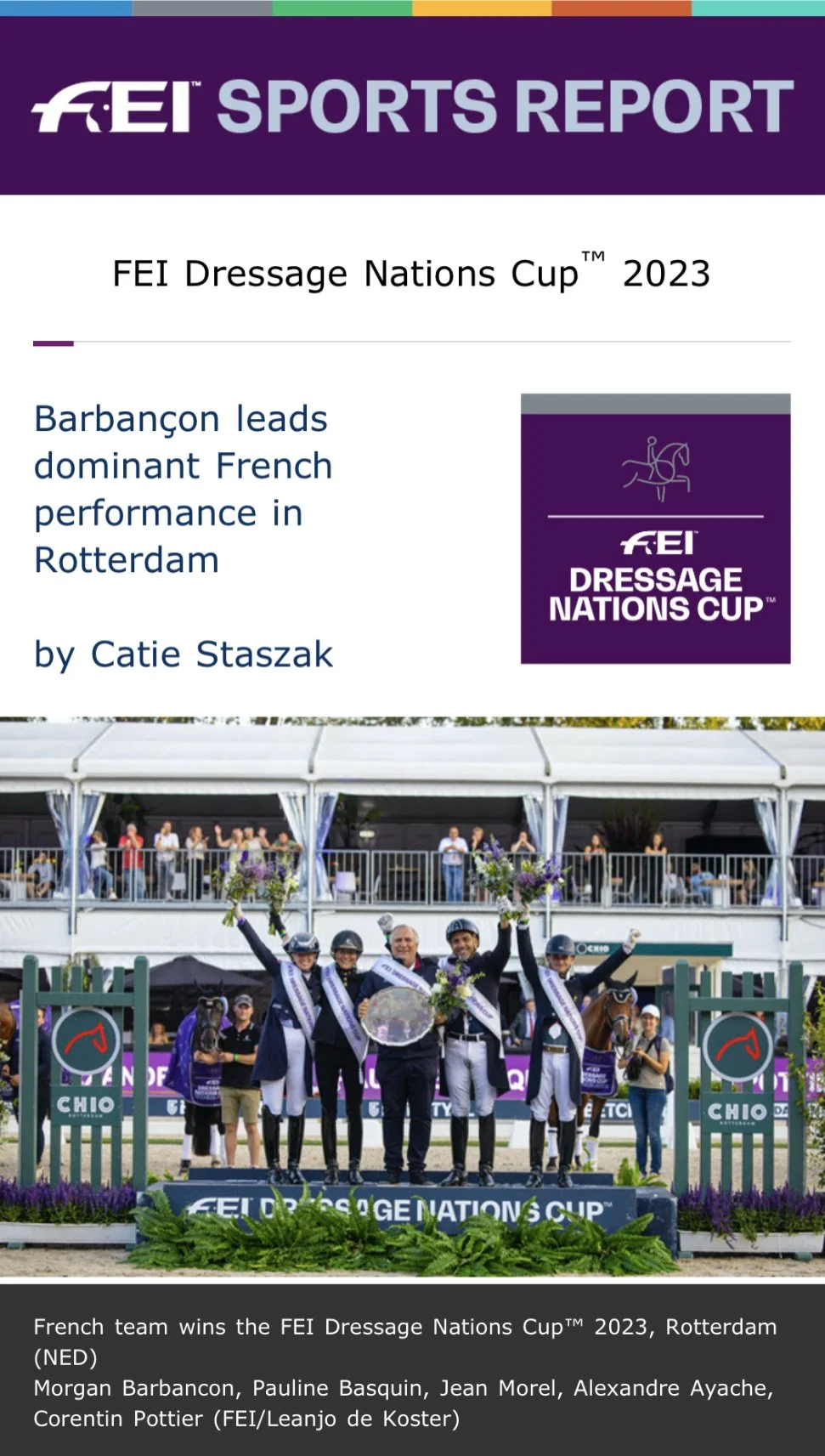 France now sits third in the FEI Dressage Nations Cup™ standings with 18 points. Germany continues to lead the rankings with 31 points, while Sweden is second with 25 points.