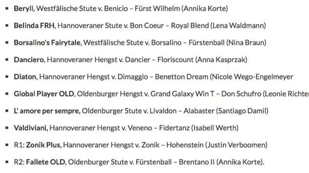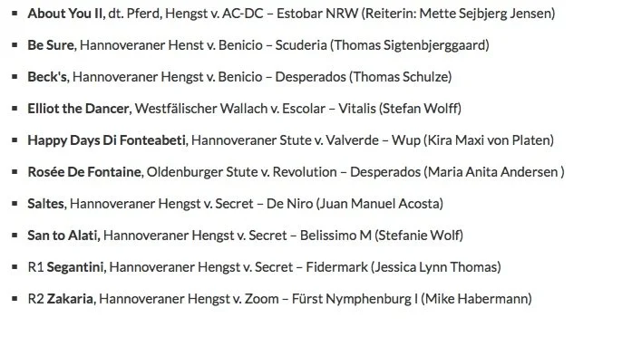 Highlights from today´s selected 5 year old horses with the absolute best two combinations were Hannoveraner stallion San to Alati with Stefanie Wolf in the saddle showed ones again a very smooth and easy performance an Hannoveraner stallion Be Sure with Danish Thomas Sigtenbjerggaard also showed a very nice supple presentation with good power.