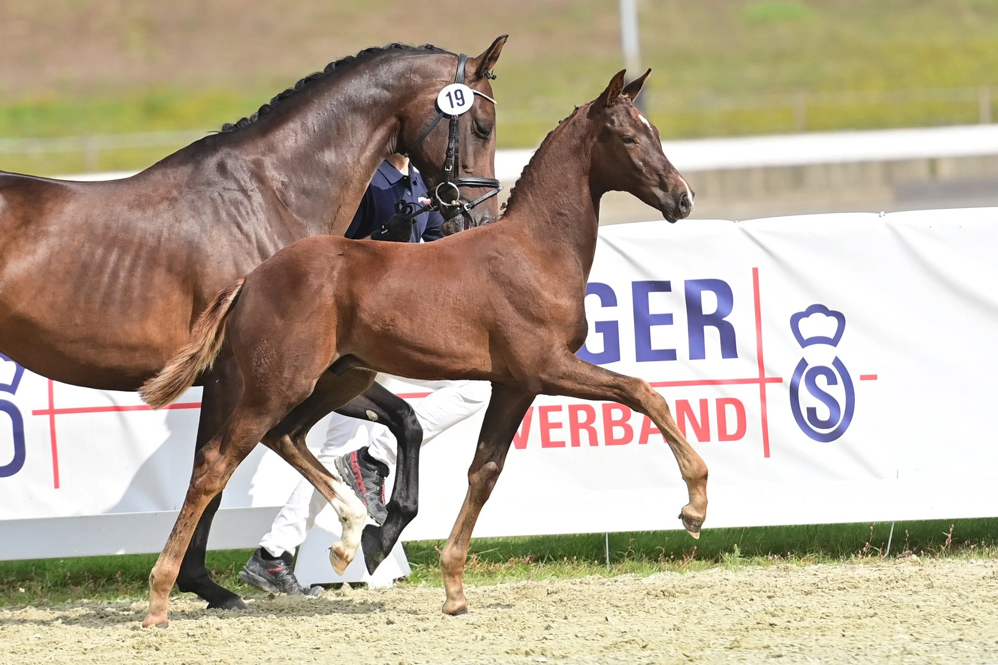 The nephew of Dante Weltino OLD Las Cruces by Las Vegas - Vivaldi - Welt Hit II stood out as the top-priced foal. With a knockdown price of 67,000 euros, the movement-genius colt received the top bid. Las Cruces is bred by Olaf Bahls from Voigtsdorf, Mecklenburg-Vorpommern. The stallion prospect was sold to an international dressage stable in Great Britain. His dam Ronja is sister to the top sire and Swedish championship horse Dante Weltino OLD/Therese Nilshagen, SWE. Granddam Rihanna is sister to Riwera de Hus, Olympic participant in London under Jessica Michel, FRA.