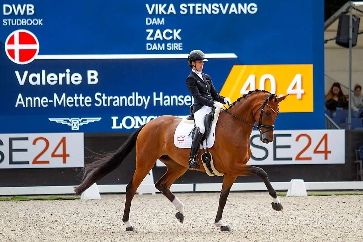 Anne Mette Strandby utters nothing but praise when she talks about her performance with Valerie. “It felt amazing! In the warming-up she was a little bit nervous about the umbrellas and the rain. It surprised me, since she is usually 200% cool. As soon as she entered the arena, she was perfect.” The Danish rider confidently looks forward to the rest of the event. “Her best qualities? Everything. She possesses three amazing gaits and a super heart. I am super happy with our debut!”