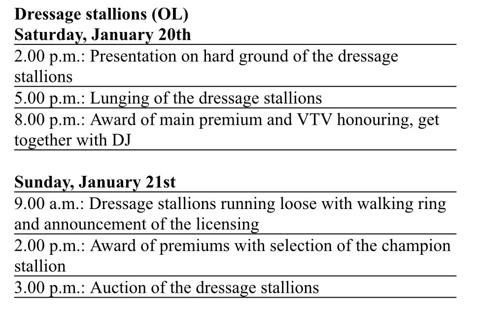 Stay tuned for an exquisite selection of show jumping and dressage stallions who will face the critical eyes of the licensing commission to earn the coveted Oldenburg licensing predicate. You can find the exact schedule here:
