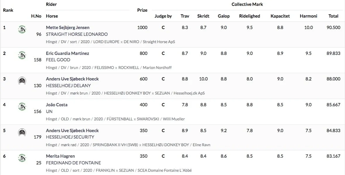 Blue Hors Santiano og Hedelunds Fellini var begge UVM deltagere, og derudover har Fellini Klint og Hønnerups Qlision kvalificeret sig to gange hver.