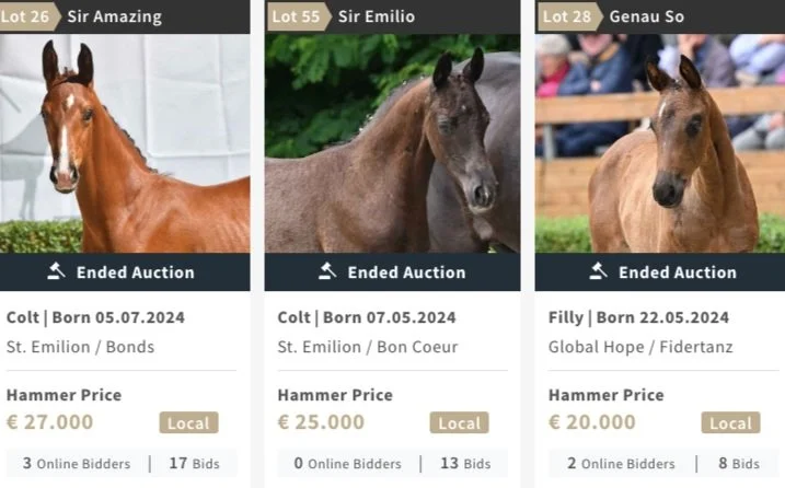 7 of 20 young dressage horses sold for more than 100.000 euro.