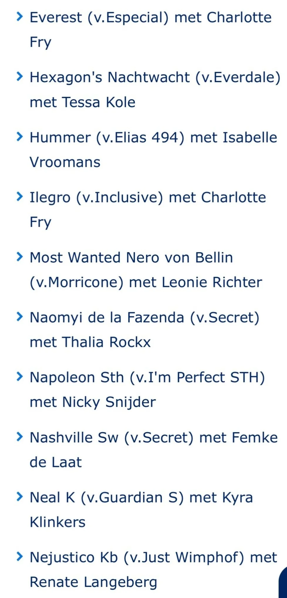 This years selection commitee for the Dutch young horses are Johan Hamminga, Alex van Silfhout and Janine van Twist. Below the selected combinations from 1st selection ⬇️⬇️
