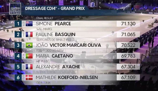 Charlotte Mogensen February 6, 2026 Simone Pearce and her 10 yr old Will Marq winner of CDI4 Grand Prix Bordeaux Charlotte Mogensen February 6, 2026