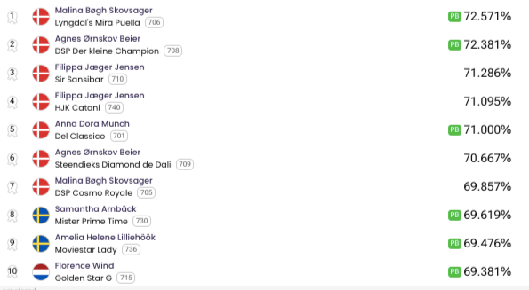 I youngrider klassen var det også med dansk sejr og personlig bedste - placerede: